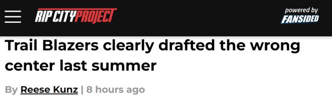北京時間1月18日,過去兩場G聯賽,楊瀚森分別創下得分(22分)和籃板(17)新高,但回到開拓者,他還是難以進入輪換,並打出高質量的表現。這也讓波特蘭的一些媒體對他感到失望。今日,波特蘭媒體Rip City Project撰文談及開拓者的選秀決定,標題是《開拓者去年夏天顯然選錯瞭中鋒》。以下是文章相關內容——