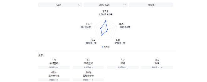 16次出場後,焦海龍場均可為球隊貢獻10.1分5.2籃板1助攻,投籃命中率62.1%,三分命中率41.4%。這兩項命中率數據,均創下瞭他職業生涯出場次數超過2場的賽季新高。
