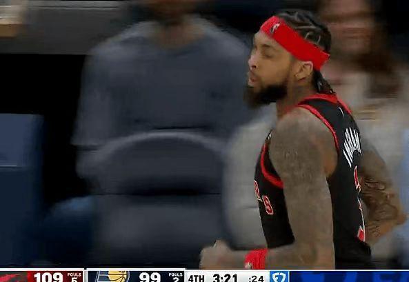中場休息回來,猛龍連續兩節單節得分不足30分,步行者連續兩節單節得分30分。步行者率先一波13-7攻勢追到差13分,猛龍內外開花很快重新擴大83-64領先優勢,猛龍之後繼續擴大94-74領先優勢。步行者連追4分,猛龍單節27-30被追回3分,三節結束猛龍94-78領先步行者。前三節比賽,巴恩斯20+5+12與英格拉姆22分,引領猛龍5人得分上雙;西亞卡姆4記三分22+7與沃克3記三分11分。