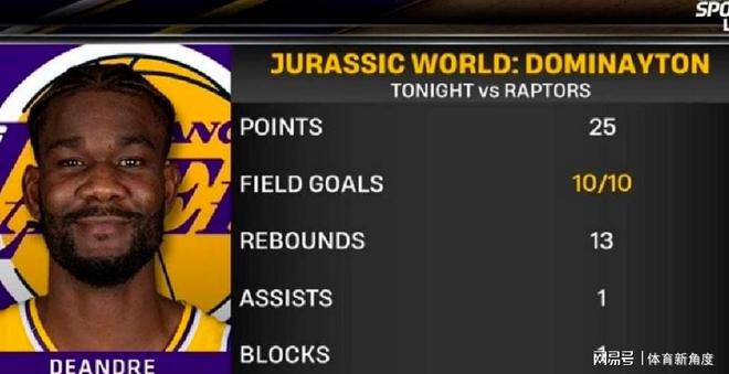 在近期的一場比賽中,湖人隊回到主場,以110 - 93的比分幹凈利落地戰勝瞭東部排名第四的猛龍隊。讓我們先來瞧瞧雙方的數據表現。猛龍隊這邊,球員們雖奮力拼搏,但最終未能扭轉局勢;而湖人隊這邊,有一位球員的表現簡直可以用驚艷來形容,他便是艾頓——哦不,大傢習慣親切地稱他為“艾寶”。在這場比賽中,艾寶的狀態神勇至極,投籃10次出手全部命中,以100%的完美命中率狂攬25分,同時還摘下13個籃板,輕松拿下兩雙數據。