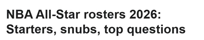 北京時間1月20日,經過數周球迷、媒體與球員的投票評選,2026年NBA全明星賽首發陣容正式確定,西部首發是亞歷山大、約基奇、東契奇、文班亞馬和庫裡,東部首發是字母哥、坎寧安、佈倫森、馬克西和傑倫-佈朗。全明星替補名單將於2月2日公佈。