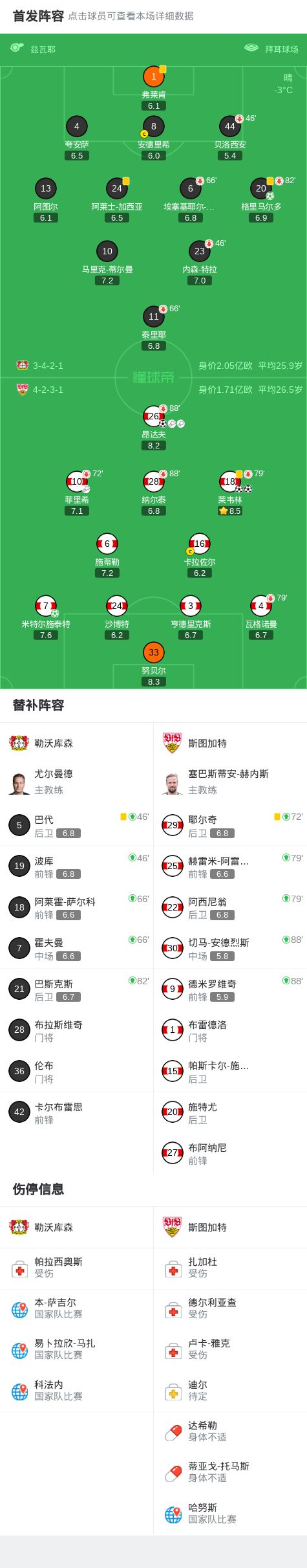 第45分钟,梅开二度,莱韦林禁区外调整兜射破门,斯图加特3-0