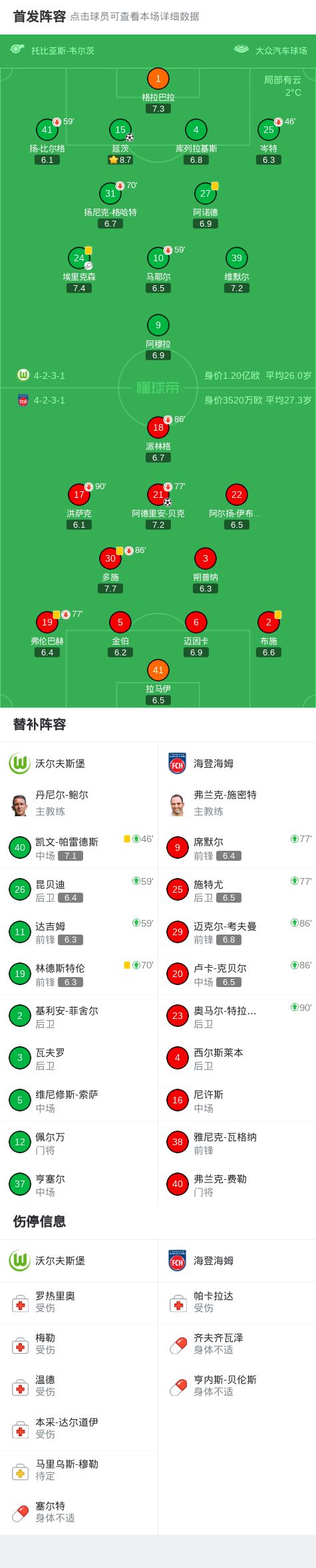 海登海姆1-0沃尔夫斯堡