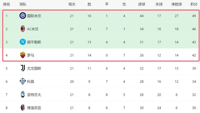 在拿到3分之後,AC米蘭目前繼續排名第二,他們落後榜首的國米3分,本賽季依然有機會逆襲爭冠。值得一提的是,羅馬本輪也在客場2-0拿下都靈,他們已經反超尤文,排名上升到第4位。本賽季,羅馬已經成為意甲大黑馬,他們將與國米、AC米蘭和那不勒斯競爭冠軍。本輪聯賽,意甲4強全勝,也逐漸拉開瞭和其他球隊的差距。從目前來看,國米依然是頭號熱門,不過他們對陣強隊戰績不佳,這已經成為國米的短板。在剩下的比賽中,國米還要遇到AC米蘭和尤文等強隊,一旦再輕易丟分,國米恐怕會被身後的對手反超。